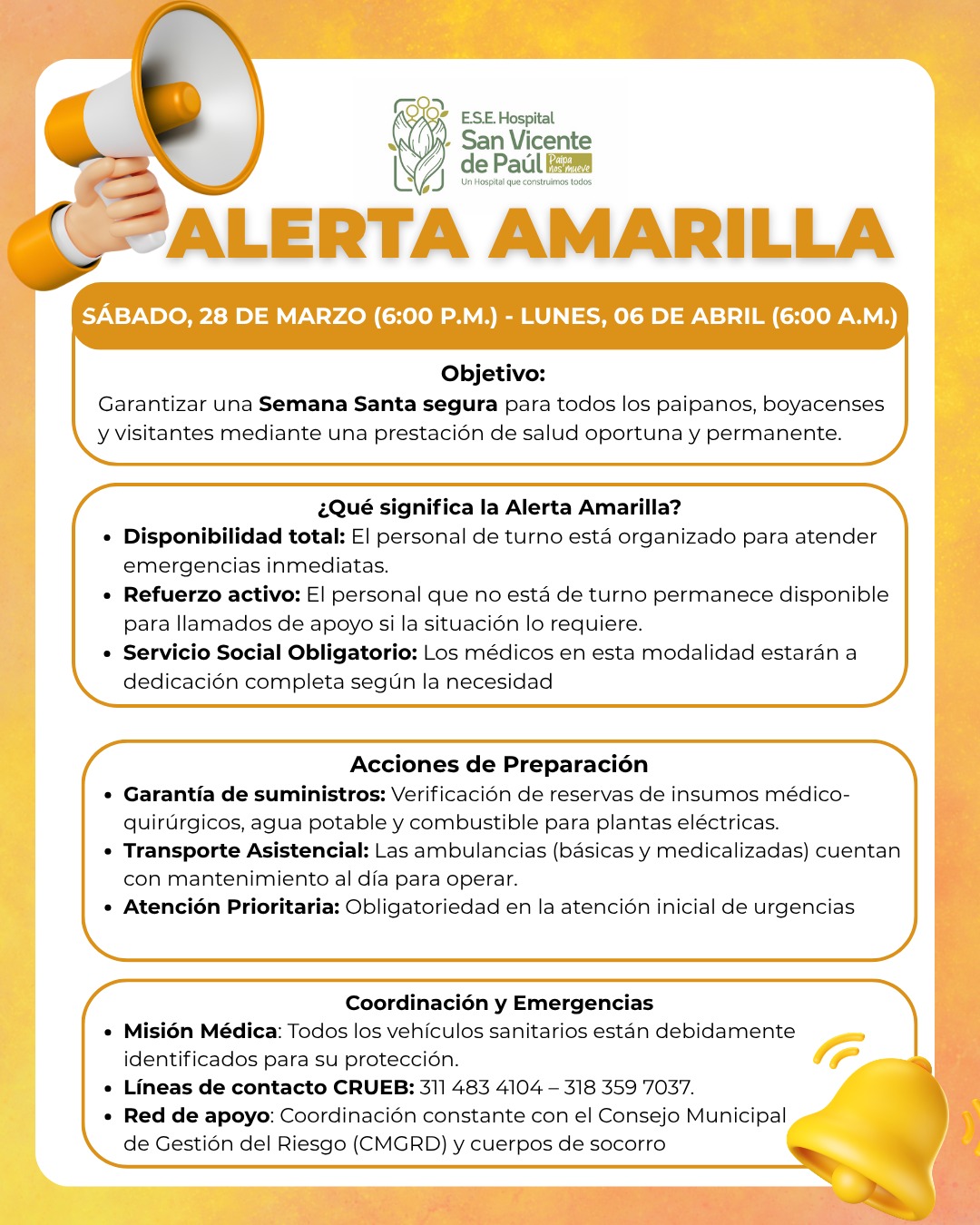 La E.S.E. Hospital San Vicente de Paúl de Paipa, se permite informar a toda la comunidad que estas son las…